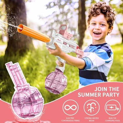- Powerful Electric Blaster: Automatic shooting with high pressure for non-stop water action.