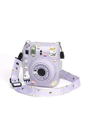 Instax Mini 12 Camera Case – Crystal Clear with Rainbow Strap & Stickers (Lilac Purple)