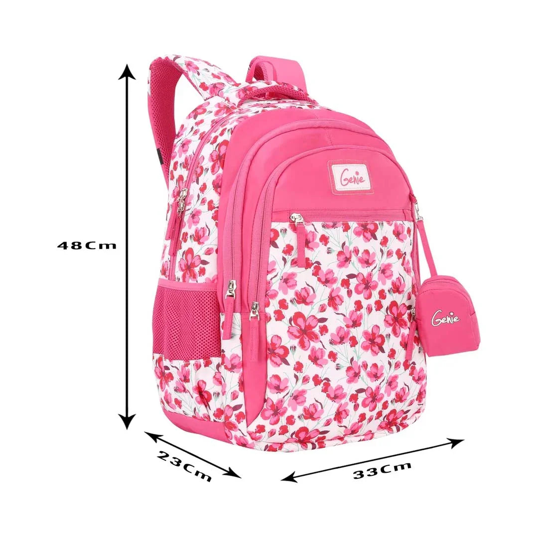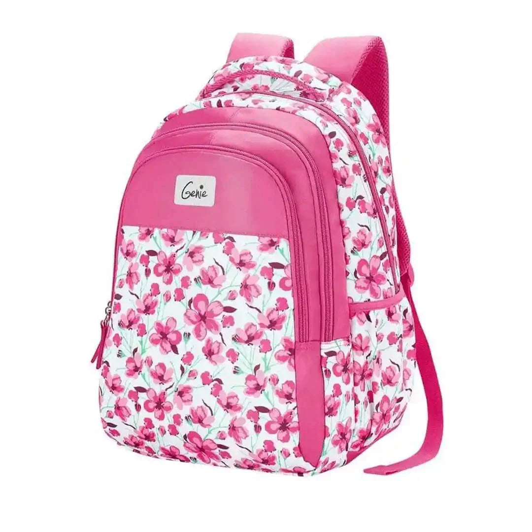 Genie Camellia 15-Inch Waterproof School Backpack – Pink | Lightweight, Stylish & Durable