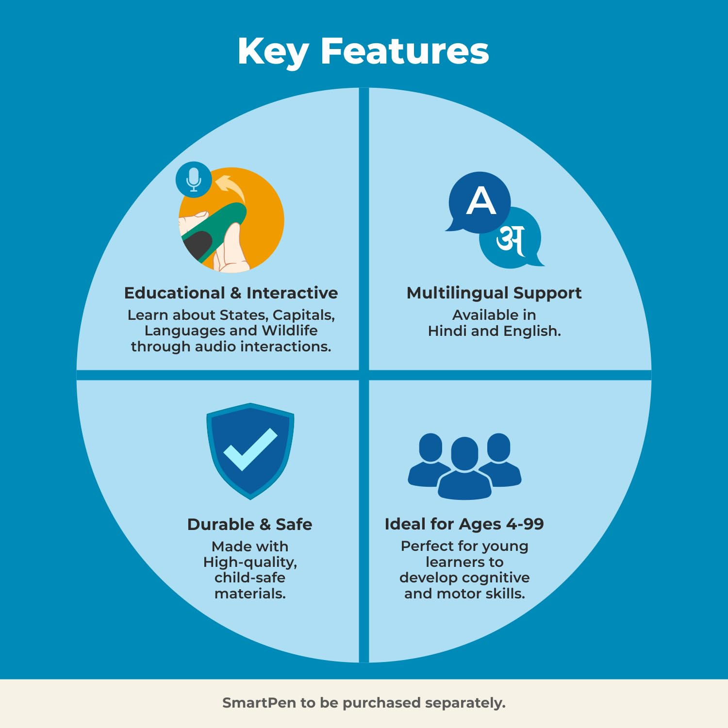 The goDiscover India Map Puzzle is a fun and interactive way for children to explore India’s geography and culture through hands-on play. This 120-piece educational puzzle introduces kids to Indian states, capitals, languages, wildlife, art, and music, helping them build strong geographic awareness while improving problem-solving skills.