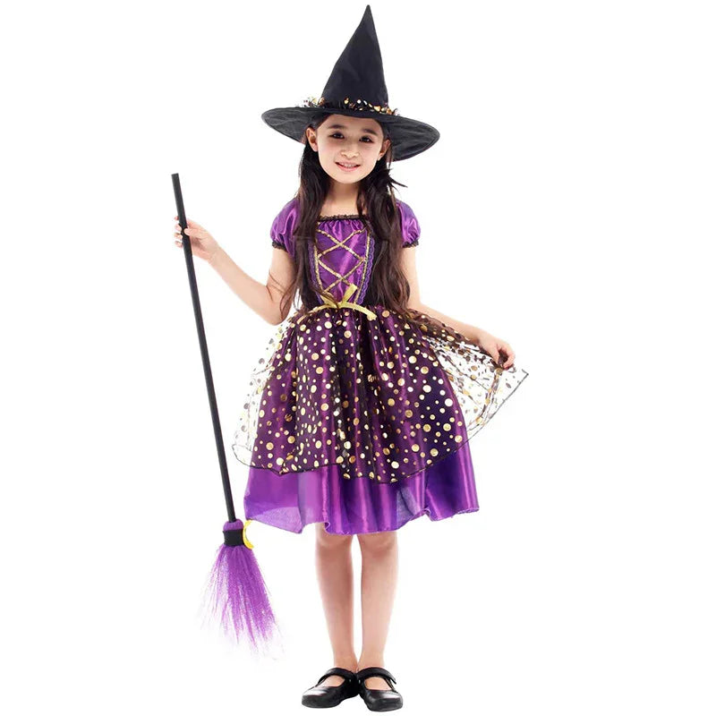 Kids & Adults Halloween Witch, Vampire & Pumpkin Costume with Hat – Party & Carnival Dress