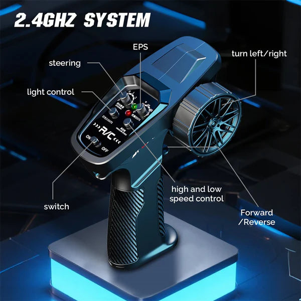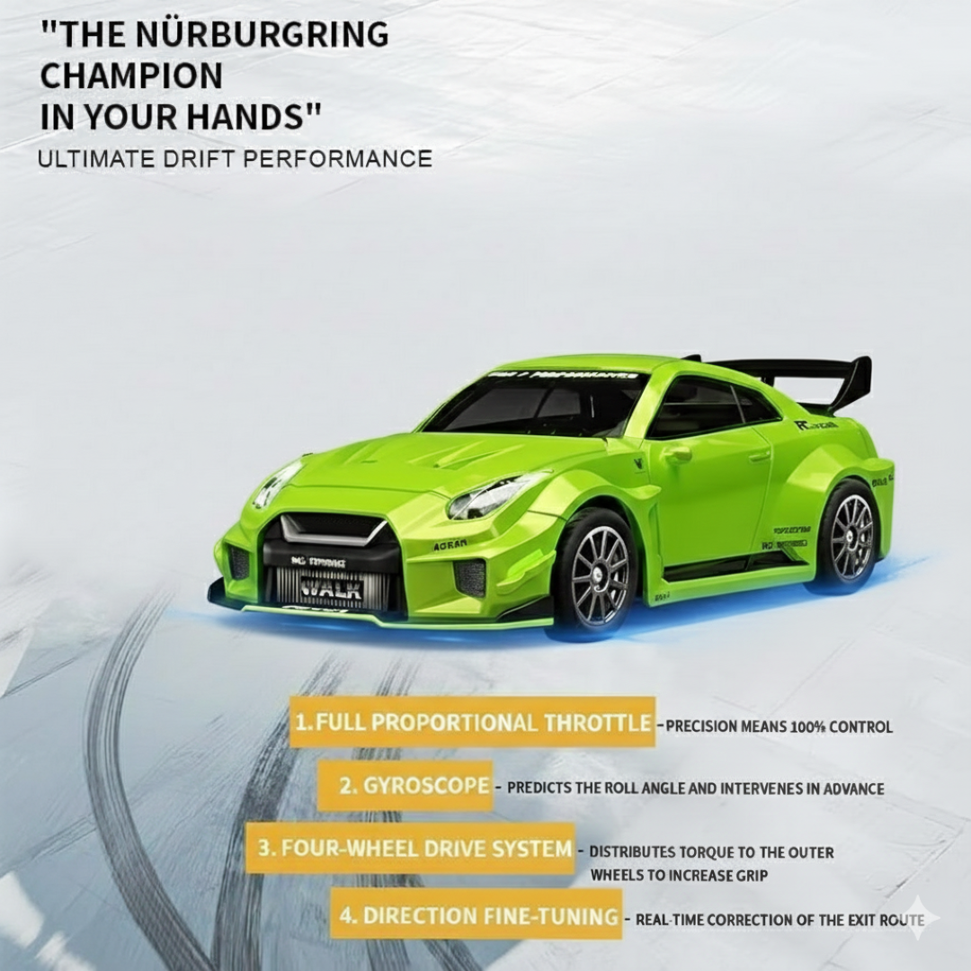 Experience high-speed drifting action with the Hstar 1:43 RC Drift Car D43-02Q3 designed for thrill-seekers and RC car enthusiasts. Built with a durable alloy body and powered by a 4WD system, this compact RC car delivers smooth drifting, sharp turns, and stable control at speeds of up to 20 km/h. Equipped with a gyro stabilization system, silent bearings, and adjustable speed modes, it ensures precise handling and reduced noise during races. The realistic sports car design, combined with LED lighting, adds an authentic racing feel. Perfect for indoor and outdoor play, this RC drift car is ideal for kids, hobbyists, and collectors alike.