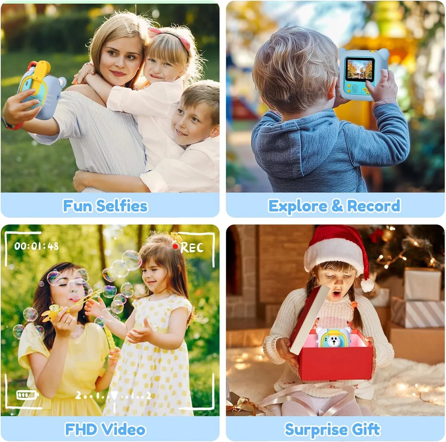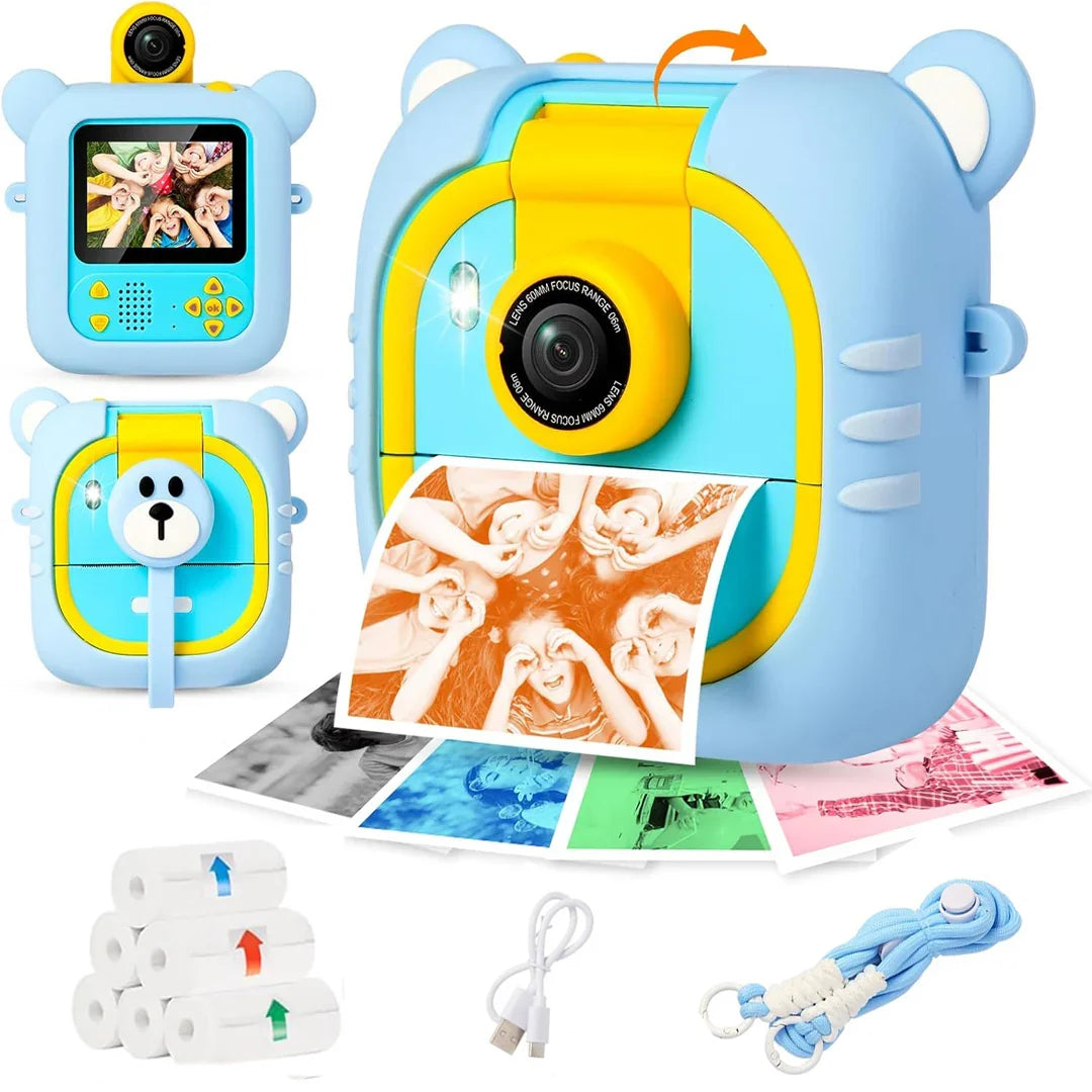 Instant Print Kids Camera – 48MP 1080P Digital Video Toy with Rotating Lens