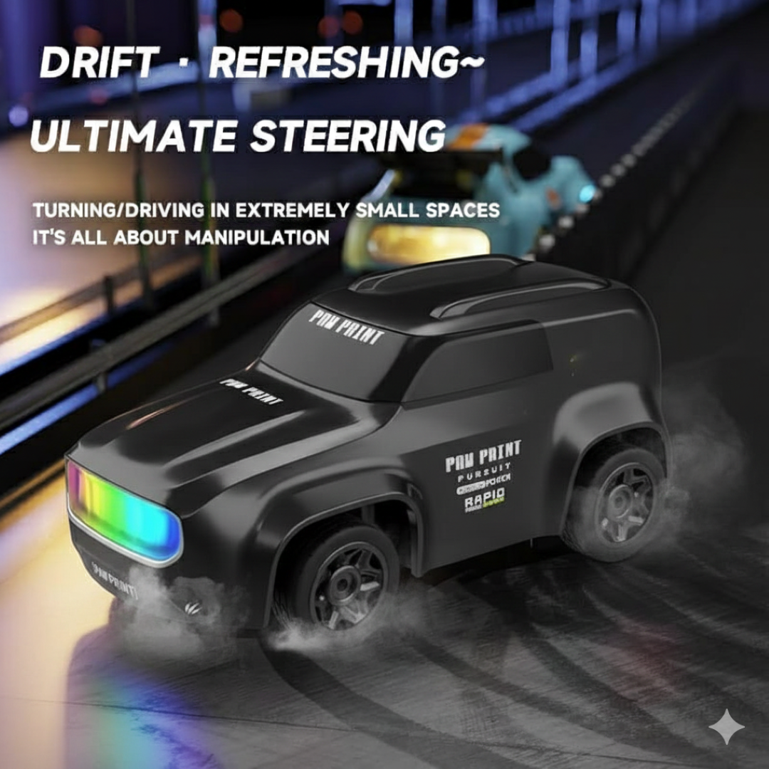 Experience high-speed drifting in the palm of your hand with the Mini 4WD Q197 1:64 Scale RC Drift Car. Compact, stylish, and built for performance, this micro drift machine delivers thrilling action with multi-color LED lights, adjustable drift modes, and a powerful instant-boost fast-charging system.