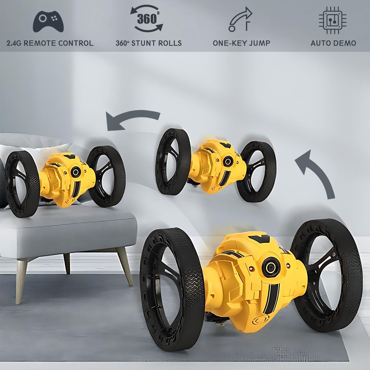 the JJRC Q207 2.4G Double-Sided RC Stunt Car, a high-performance remote control vehicle designed to thrill kids and RC enthusiasts alike. non-stop action and excitement with Built for extreme stunts, this multifunction bounce car features double-sided driving, 360° flips, and retractable flexible tires that easily transform between driving modes.