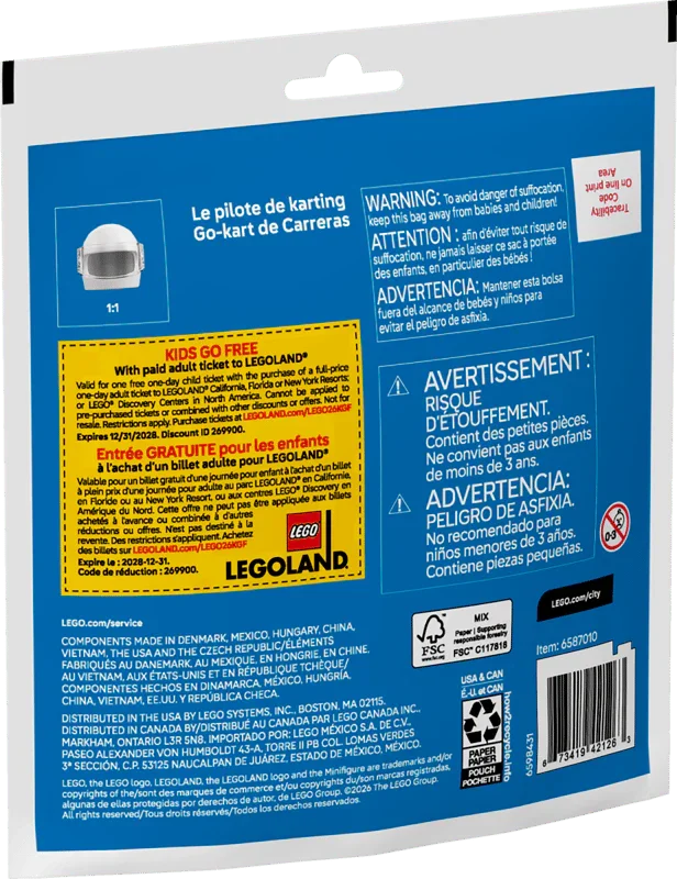 Fuel high-speed creative play with the LEGO® City Go-Kart Racer (Set 30719). This fun and compact LEGO City polybag lets young builders jump straight into racing action with a sleek go-kart, slick racing tires, and a driver minifigure wearing a protective helmet.