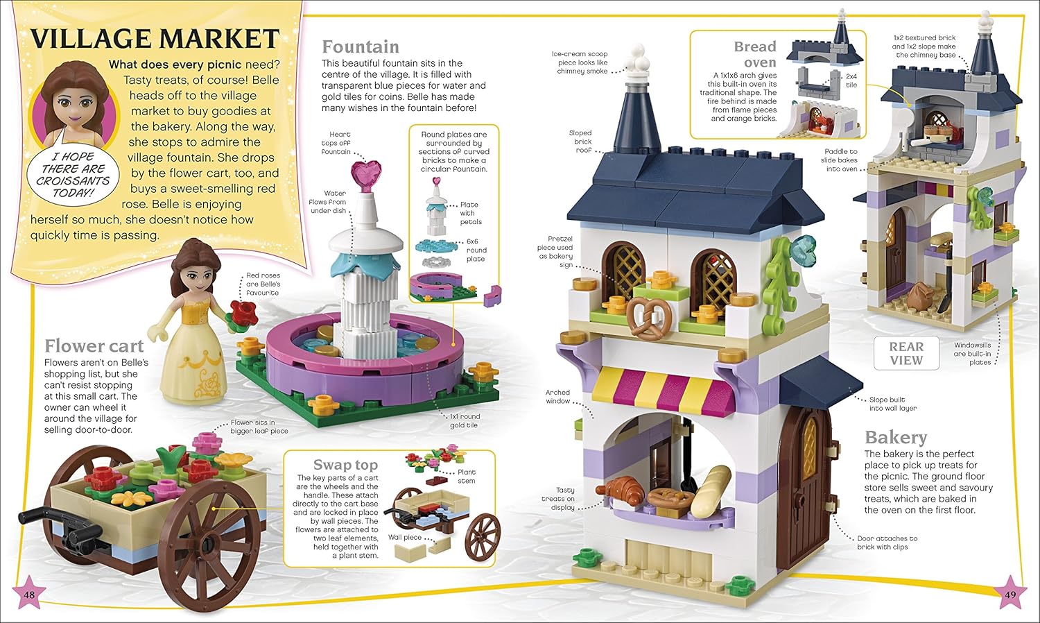This beautifully illustrated DK hardcover combines reading and building, featuring over 50 creative ideas and story starters that encourage children to build, play, and explore the enchanting world of LEGO Disney Princess. The book is divided into five exciting chapters, each centered around a beloved Disney Princess and her magical adventures.