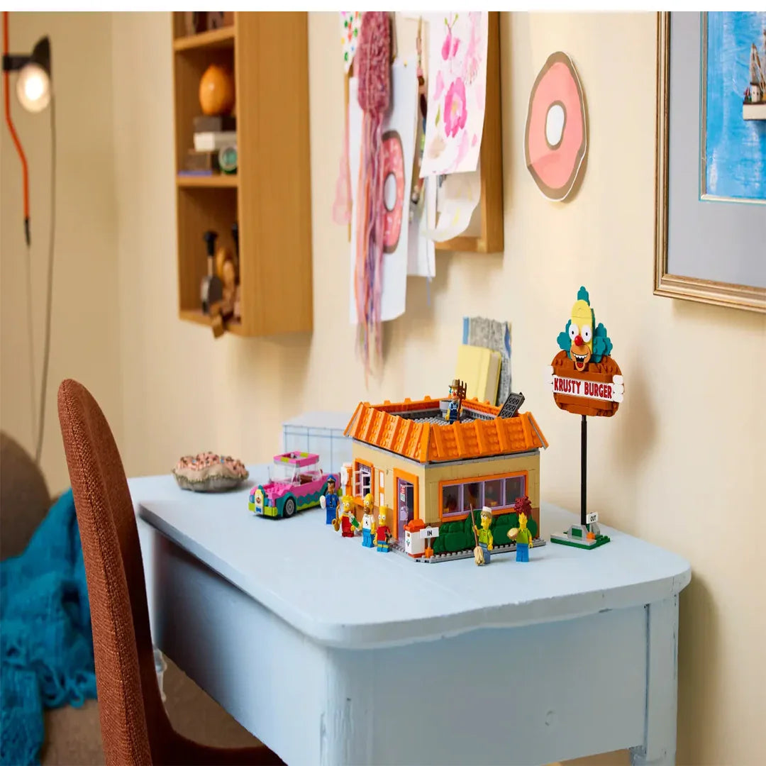 Step into the world of Springfield with this meticulously detailed LEGO Icons Krusty Burger set. Boasting 1,635 pieces, it faithfully recreates the iconic fast-food eatery complete with a drivethrough, clown-car, and the beloved pole sign. The foldout design reveals a complete interior€”kitchen, dining area, bathroom, and drive-thru booth€”offering both display-worthy aesthetics and immersive play. Designed for ages 18+, this set is a nostalgic tribute to The Simpsons, ideal for collectors, fans, and creative home-office dcor.