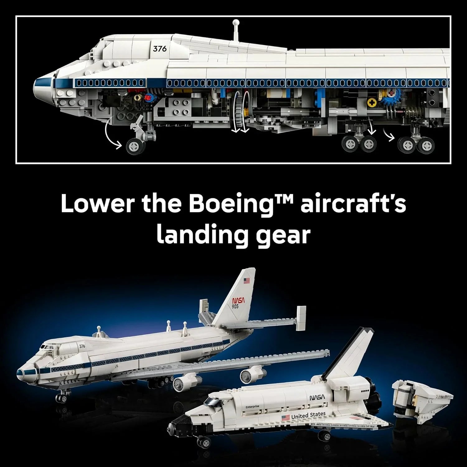 First Official LEGO 747 Replica Breaks new ground by launching LEGOs first-ever brick-built Boeing747 and pairing it with the Shuttle orbiter.
