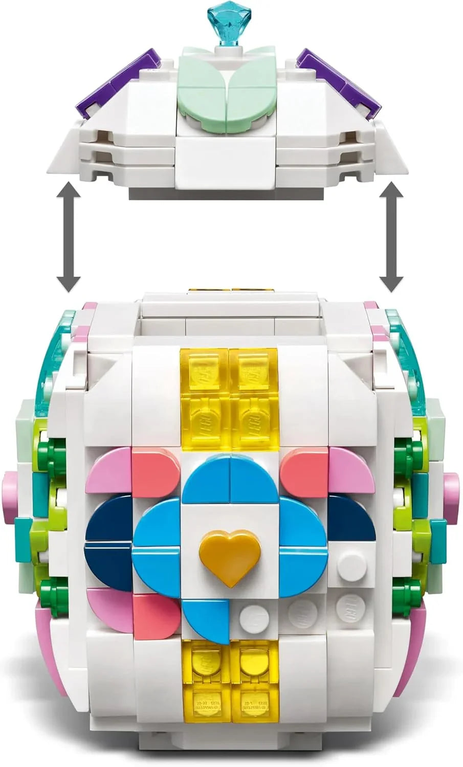 - FUN SPRING DECOR – With this building set, kids construct an Easter egg with a removable top and decorate it with colourful pieces, including a golden heart and a small gemstone element