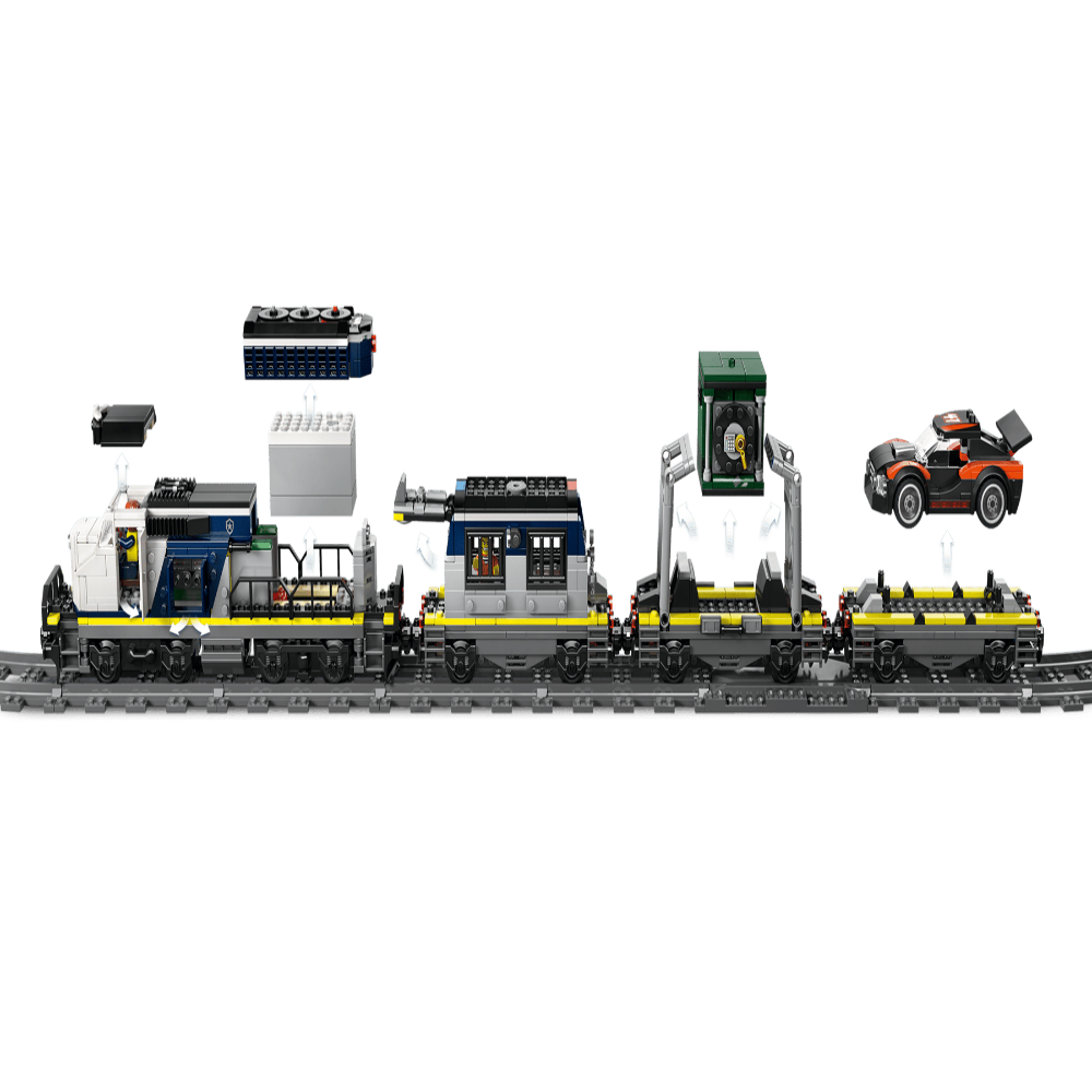 With 1313 pieces, this premium LEGO City set includes a motorized train with remote control, a full oval track layout, and multiple vehicles including a helicopter with claw, getaway car, and police support elements. Kids can stage epic heist scenes where crooks attempt to steal cargo while police race to stop them.
