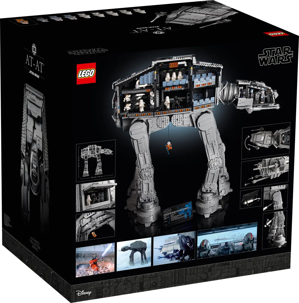 - LEGO Star Wars UCS buildable model of an AT-AT walker, Star Wars LEGO figures, and collectible minifigures.