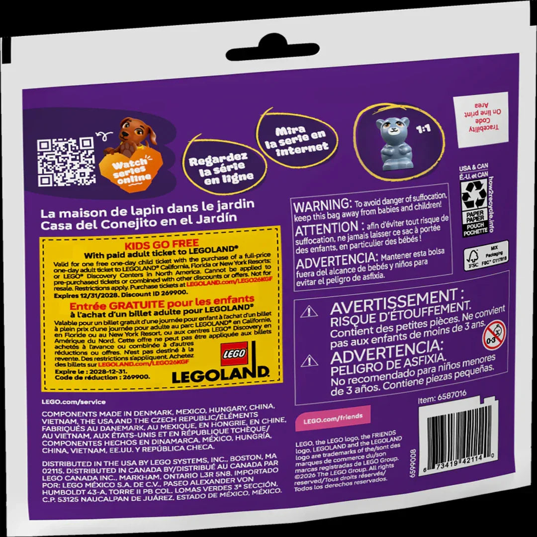 Designed for young builders aged 5+, this easy-to-build polybag set encourages imaginative roleplay, nurturing care, and creative construction. Its compact size makes it perfect for travel play, party return gifts, pocket money toys, or adding to any LEGO Friends collection.