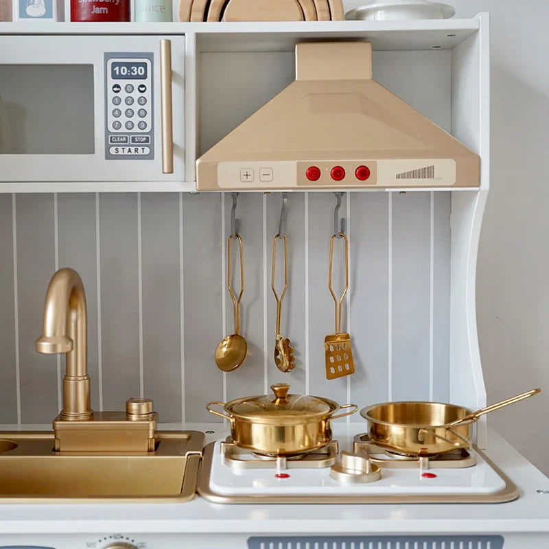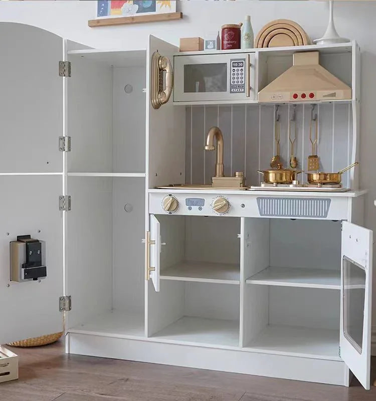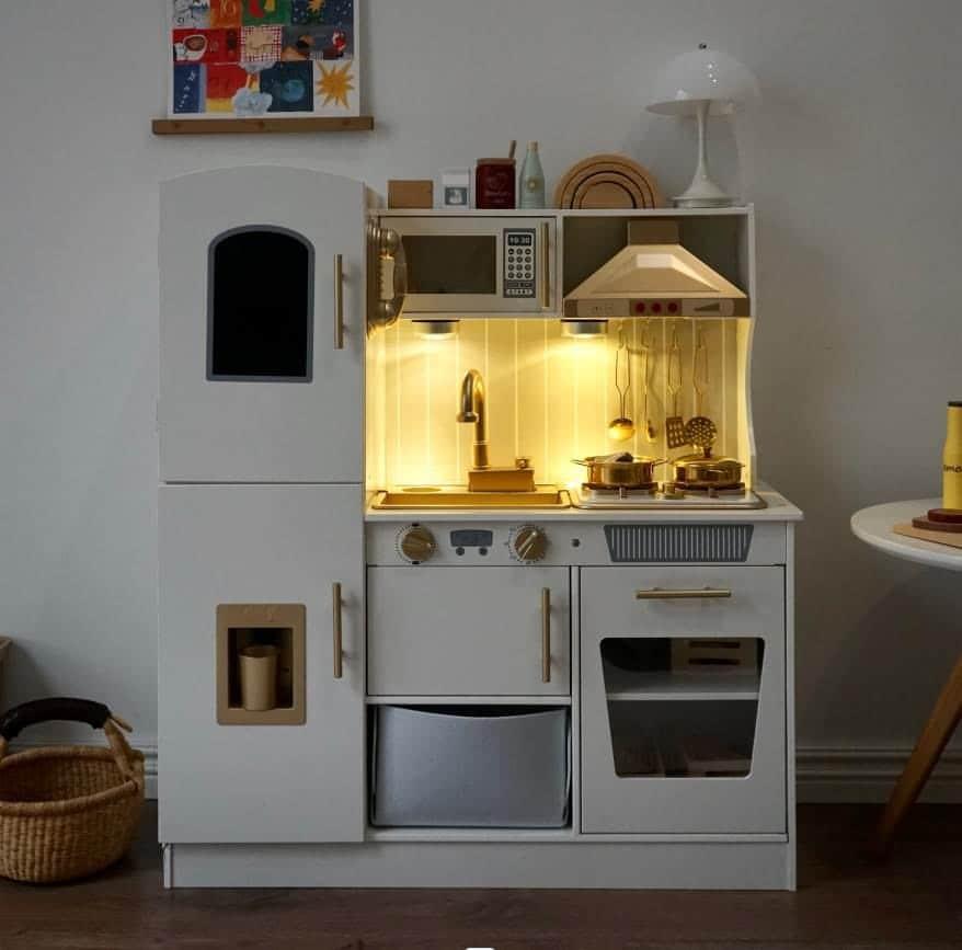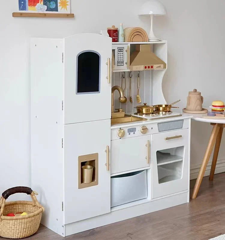Light-Up Wooden Play Kitchen Set for Kids Pretend Food & Water Play
