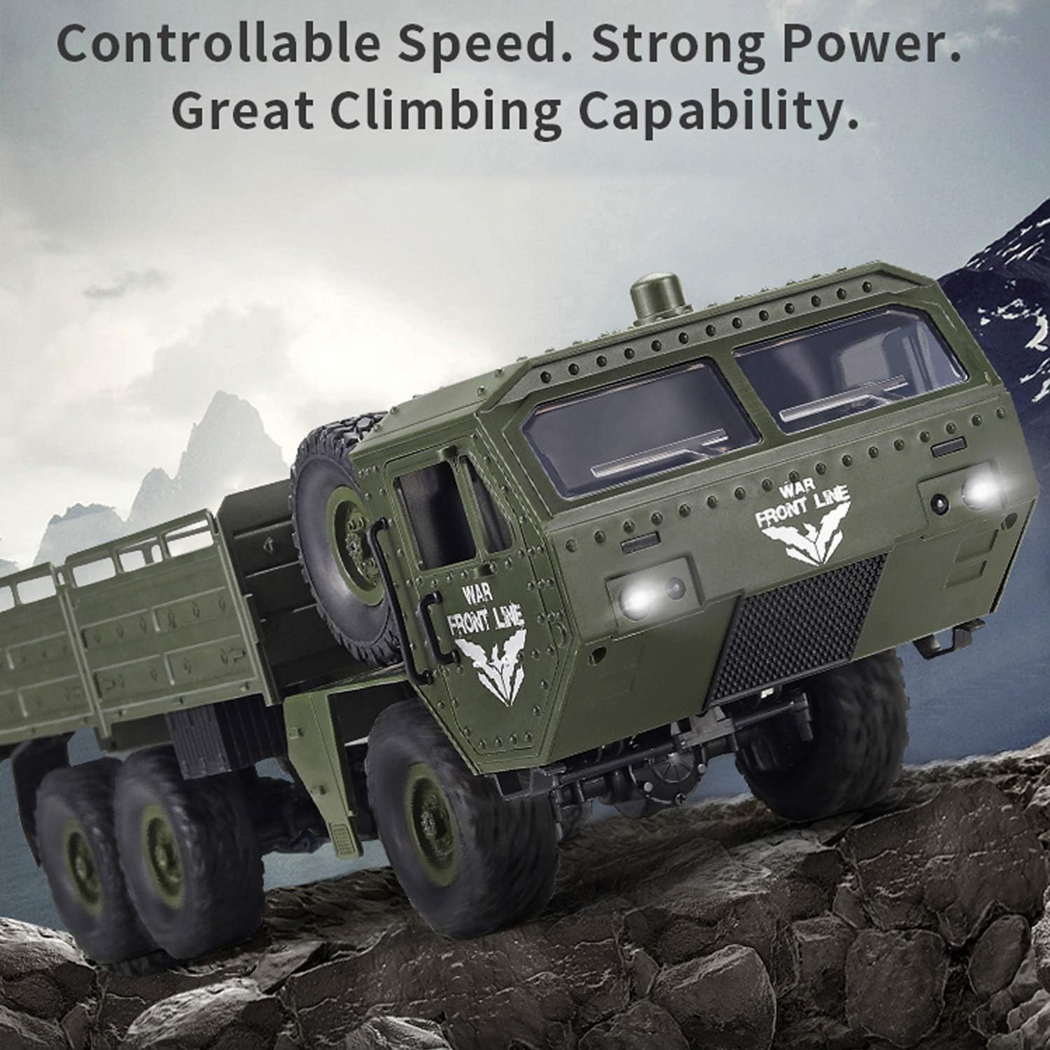 Military Transporter RC Truck 6WD | 2.4G Off-Road Army Cargo Vehicle with LED Lights (RTR)