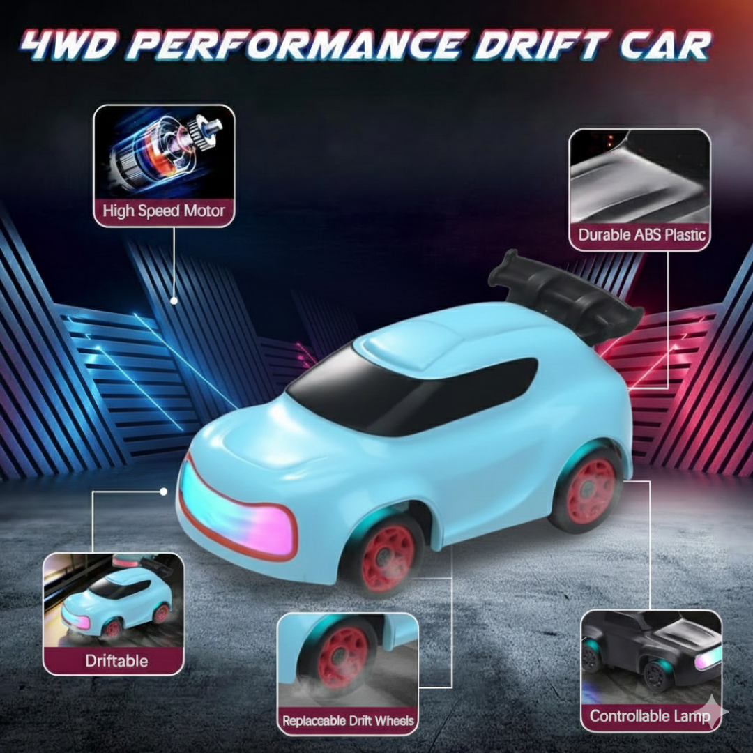 Experience high-speed drifting in the palm of your hand with the Mini 4WD Q197 1:64 Scale RC Drift Car. Compact, stylish, and built for performance, this micro drift machine delivers thrilling action with multi-color LED lights, adjustable drift modes, and a powerful instant-boost fast-charging system.