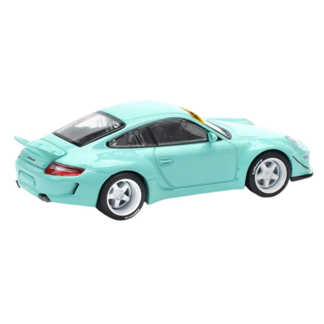 Own an iconic widebody masterpiece with the Pop Race PR64-237 Porsche 997 RWB in stunning mint green finish. This 1:64 scale die-cast model pays tribute to the legendary Rauh-Welt Begriff (RWB) custom Porsche builds, known worldwide for aggressive styling, flared arches, and race-inspired stance.
