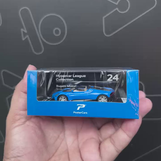 PosterCars 1:64 Bugatti Mistral – Blue – Acrylic Box | Hypercar League Collection #24
