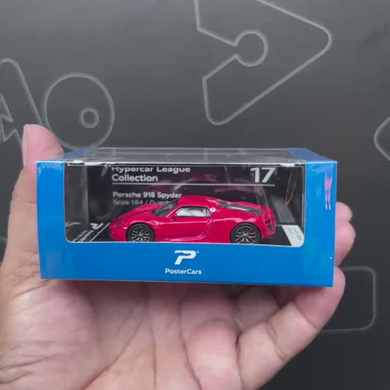 1:64 scale die-cast model of the Porsche 918 Spyder, Porsche’s legendary hybrid hypercar.