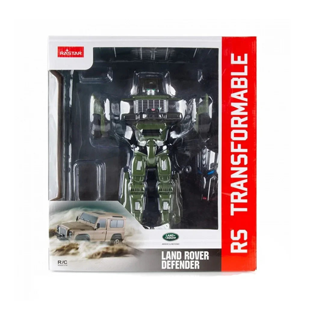 The Rastar Transformable Land Rover Defender RC Car brings together the rugged charm of the iconic Defender SUV and the excitement of a transforming robot. With the press of a button, this RC toy automatically transforms between a Land Rover Defender and a futuristic battle robot.