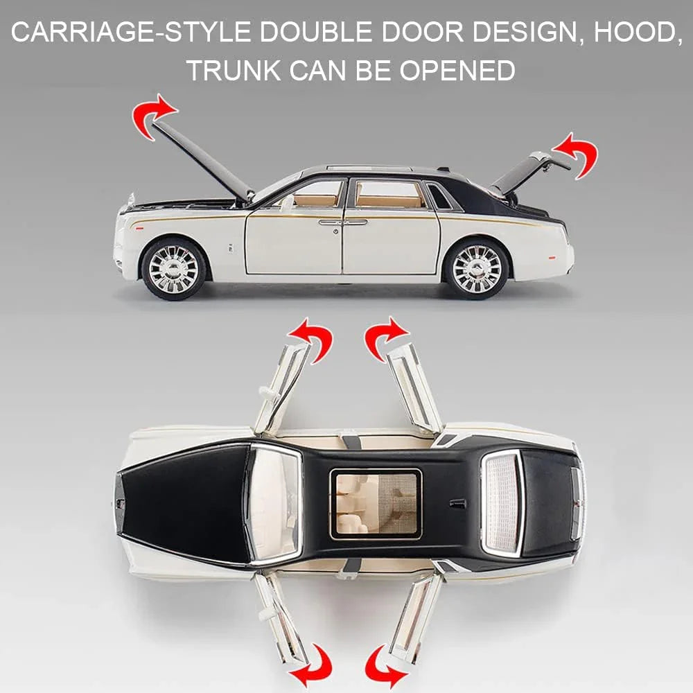 Unleash luxury and excitement with the Che-ZHI Β 1:24 Scale Rolls-Royce Phantom Die-Cast White/Black Model Car. This exclusive model brings the elegance of the Rolls-Royce Phantom to life with stunning detail, functional features, and engaging play options. Ideal for both boys and girls, this premium die-cast toy car is designed to delight young enthusiasts and car collectors alike.