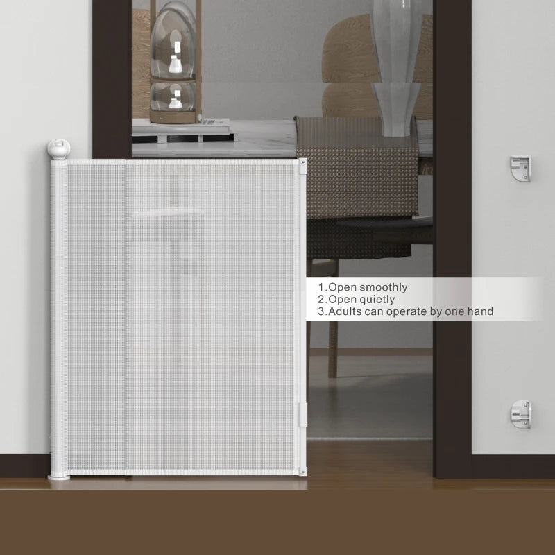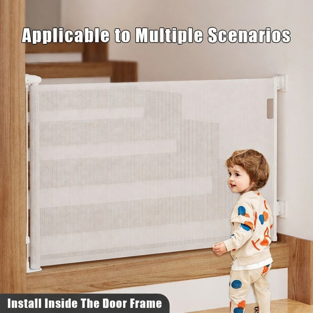 RETRACTABLE SPACE-SAVING DESIGN – The mesh gate fully retracts when not in use, keeping your home clutter-free and eliminating trip hazards common in traditional metal gates.