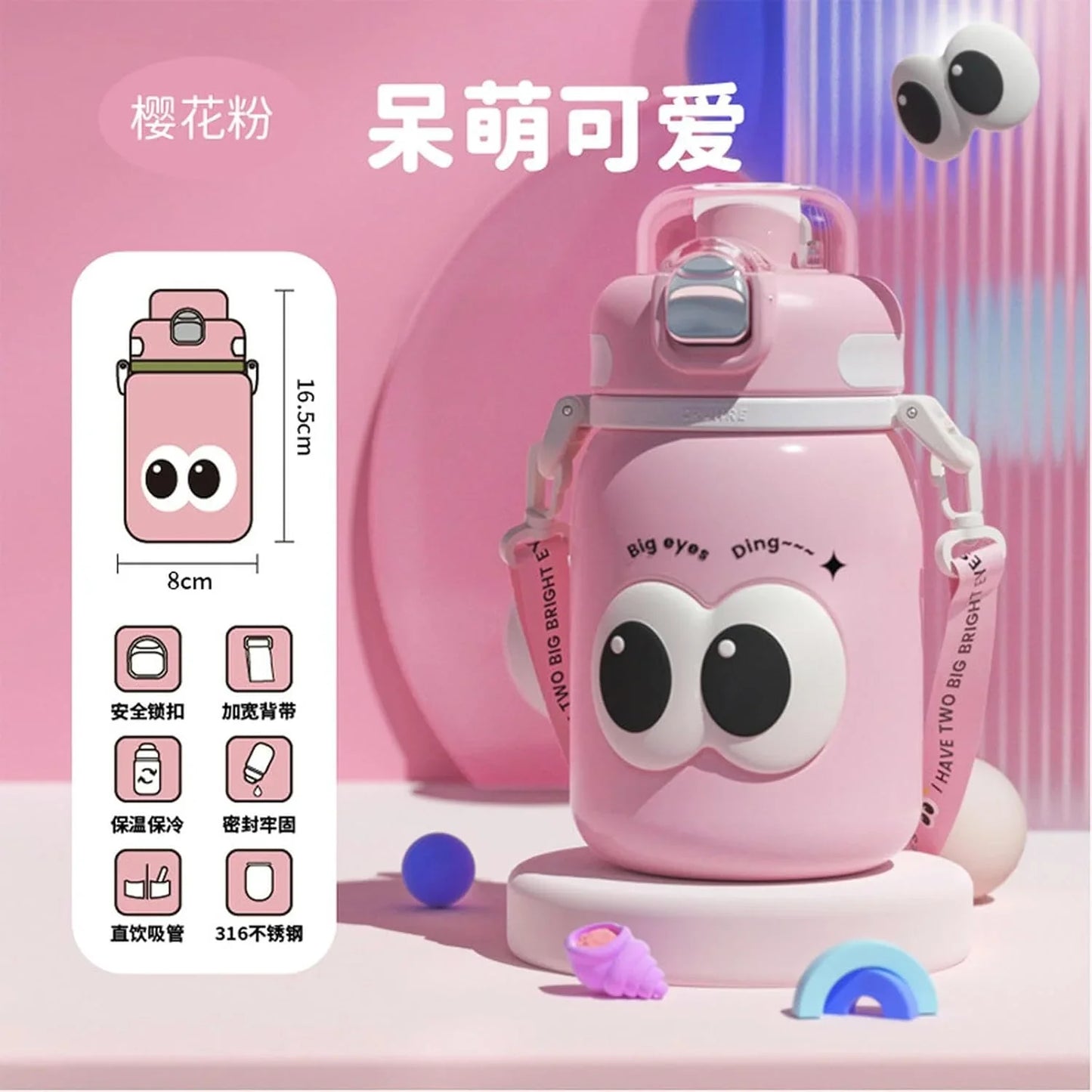 Cute Big Eyes Ding Insulation Cup Cartoon Portable Double Drinking Straw Cup 550 ML (Pink)