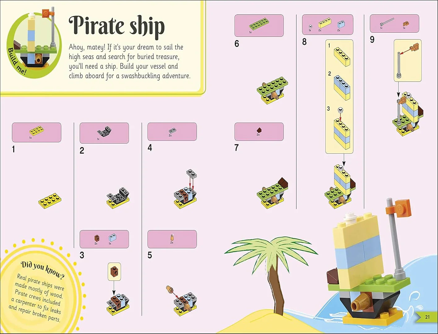 To get started, choose and build one of the LEGO models from The LEGO® Book of Bedtime Builds. Then read the story together. When it's time to sleep, the mini model and story will inspire exciting dreams. The next night, take apart the mini model and choose another adventure to build and read together.