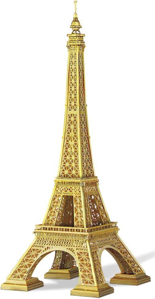 Piececool 3D Metal Puzzle Eiffel Tower (Large Gold Edition) Landmark Model – 96 Pieces – Level 3 Difficulty – Stainless Steel DIY Architecture Model Kit-Age14+