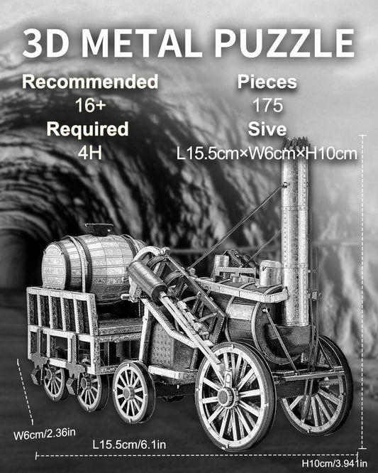 Piececool 3D Metal Puzzle Rocket Locomotive Steam Train Model – 175 Pieces – Level 3 Difficulty – Stainless Steel DIY Model Kit- AGE16+