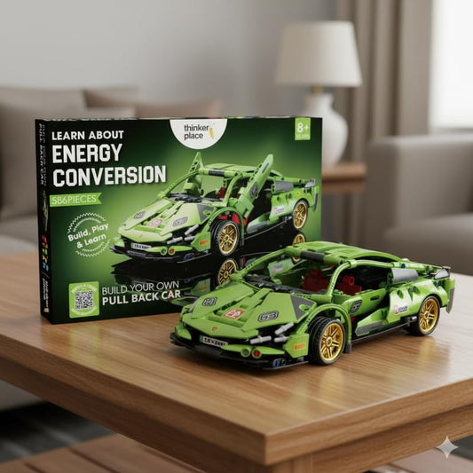 Thinker Place 1:18 DIY Blocks Pull-Back Car – Green | Buildable STEM Construction Racing Toy for Kids 8+